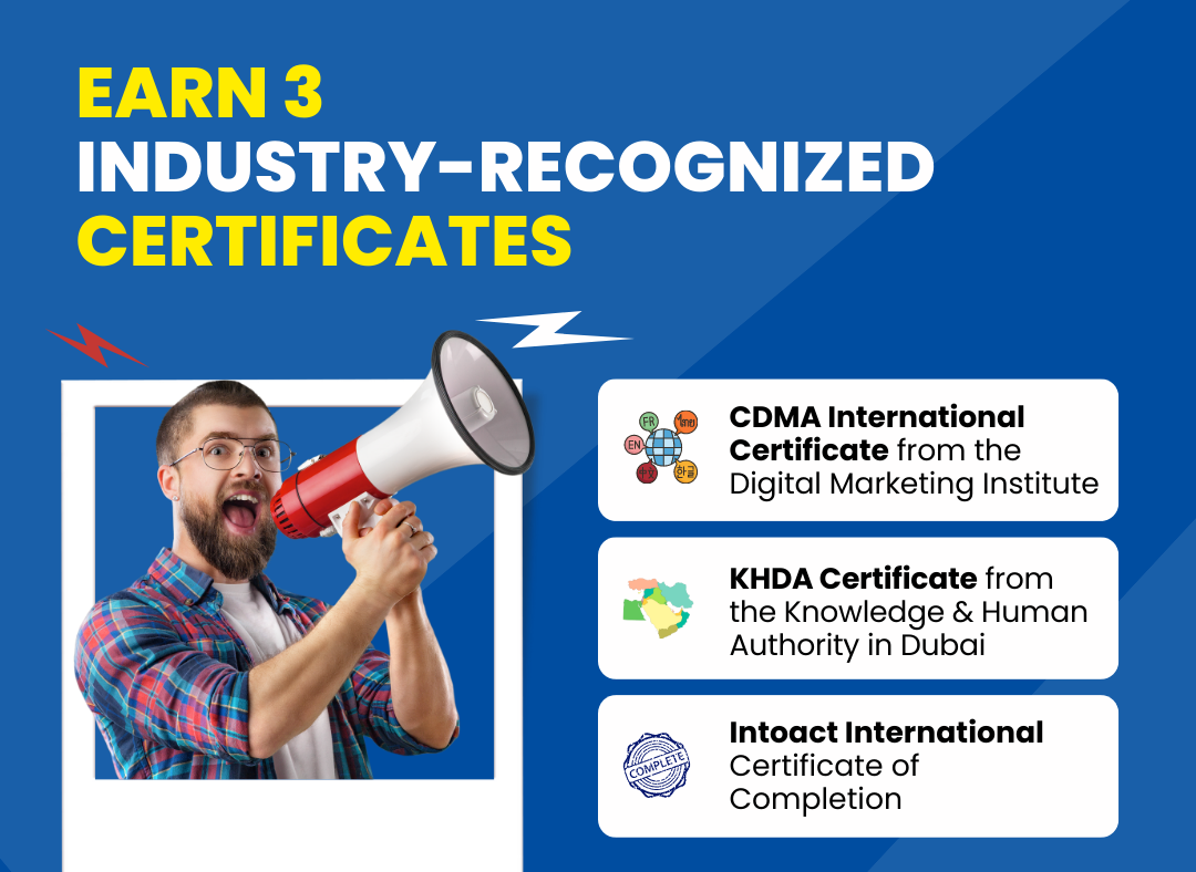 At Intoact, we believe the way forward is digital, and that is why we aim to provide practical, hands-on courses, delivered with the highest level of excellency and integrity. Our courses are certified & accredited by the most reputable institutes in the world.